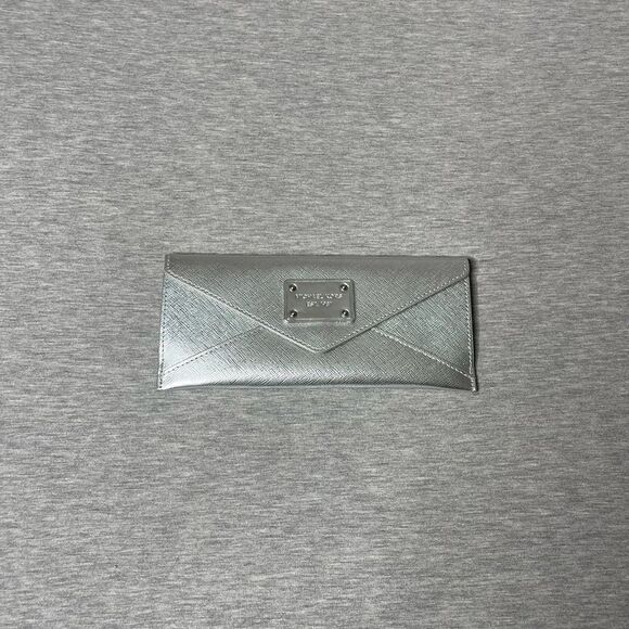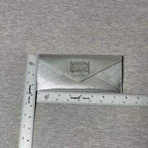 Michael Kors Metallic Silver Pewter Envelope Wallet One Pocket Clutch Bag Purse