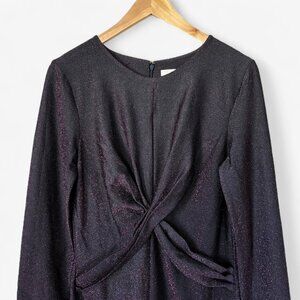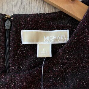 Michael Kors metallic sheath dress in great used condition (tags still attached). So pretty in person! It appears black then shines and sparkles with a metallic burgundy shimmer when you move. The fabric is a metallic knit, which is designed to glisten from every angle. Beautiful party dress for the holidays!