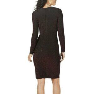 Michael Kors metallic sheath dress in great used condition (tags still attached). So pretty in person! It appears black then shines and sparkles with a metallic burgundy shimmer when you move. The fabric is a metallic knit, which is designed to glisten from every angle. Beautiful party dress for the holidays!