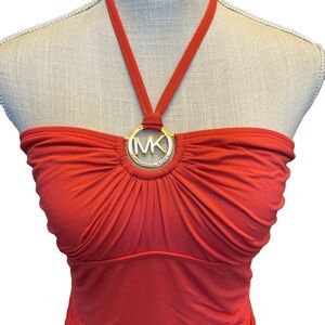 Michael Kors Michael Halter Logo One Piece Swimsuit in Orange Size: 10