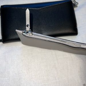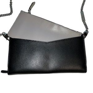 Michael Kors Large Two-Tone Crossgrain Leather Convertible Chain Wallet, NWOT, Black. Constructed from crossgrain leather in a compact tri-fold design, this chain wallet is a stylish and functional must have.The edgy chain crossbody strap wallet is perfect for nights out or travel.