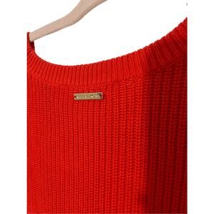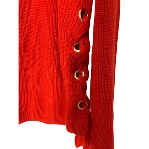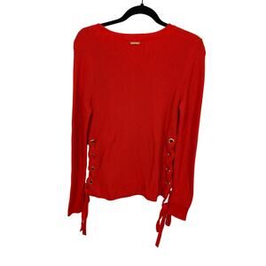 Michael Kors Michael Orange Cotton Ribbed Knit Sweater W/ Gold Side Grommets M