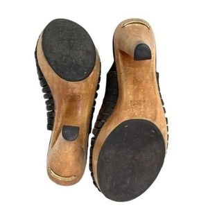 Michael Kors peep toe black leather Toe height is approx .75 inches high