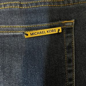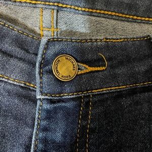 Michael Kors designer leg-lengthening skinny jeans are styled in sleek Dark Rinse wash that pairs effortlessly with everything. Mid rise; skinny fit through hips & thighs; skinny leg