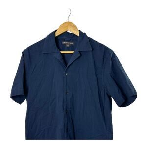 Michael Kors Midnight Navy Blue Textured Short Sleeve Button Down Shirt Medium