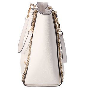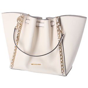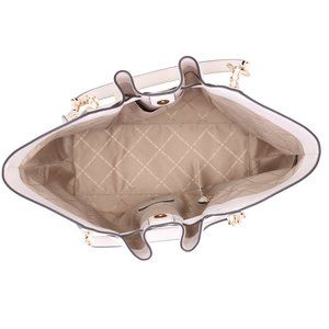 Michael Kors Mina Large East West Shoulder Bag Tote Pebbled Leather Light Cream