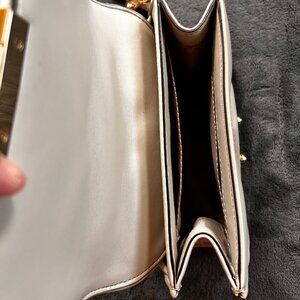 Pre own Michael Kors mini bag with chain straps, cream color. Inside is clean, but there are minor "dents" dents in the bag because of storage.