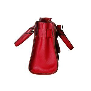 It has two rolled leather handles as well as an adjustable and detachable crossbody strap.