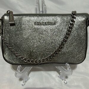 Michael Kors Mini Silver Metallic Pouchette Bag