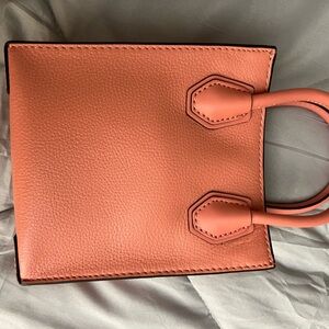 Like New. Great Condition. Authentic Michael Kors mini leather tote bag with a gold MK charm. Wallet has a zipper closure, and inside/outside slots for cards.