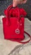 This beautiful Chic bag by Michael Kors is a Eye-catching beautiful red pebbled leather with silver hardware engraved with Michels kors on the buckles. Features a eye catching MK silver hanging logo. leather strap is removable and adjustable. Can he worn as a crossbody bag or remove strap to use as a handheld shopper bag! Has a magnetic secure closure inside with beautiful micheal Kors printed fabric inside. Also has 3 card holder slots. Very versatile Perfect for elevating any look.