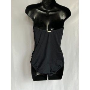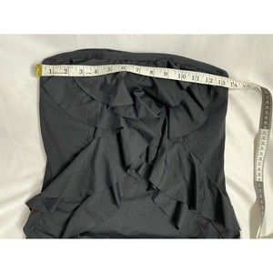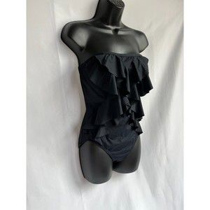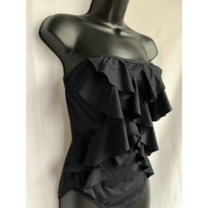 Michael Kors Mio One Piece Flutter Front Bandeau Swimsuit Women's 8 Black Ruffle