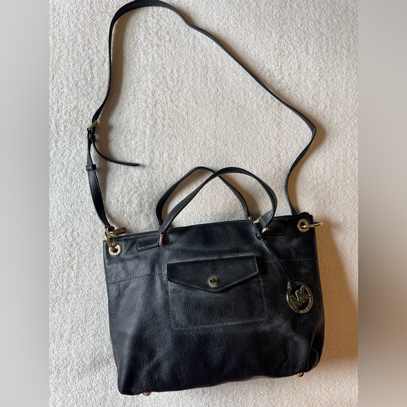 Michael Kors Mira Black Leather Crossbody Bag. Black w gold hardware