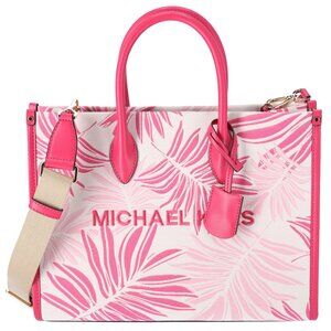Michael Kors Mirella Medium East West Tote Electric Pink Multi Palm Tree Leaves