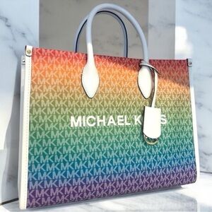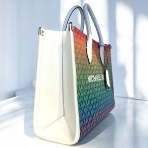 Michael Kors Mirella Medium Rainbow Logo Tote Bag Rainbow