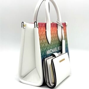 Michael Kors Mirella SM Signature Logo Xbody Tote Bag & Matching Bifold Wallet 🌈