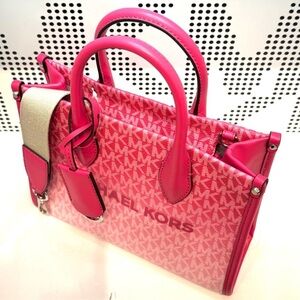 Michael Kors Mirella Small Ombré Signature Logo Crossbody Bag Dragonfruit