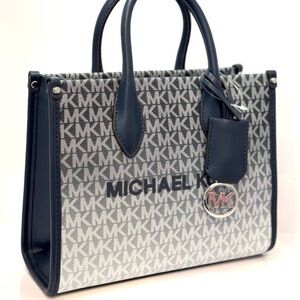 Michael Kors Mirella Small Ombré Signature Logo Crossbody Bag Navy Blue Multi