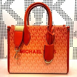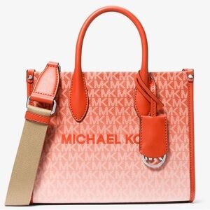 Michael Kors Mirella Small Ombré Signature Logo Crossbody Bag Red Clay