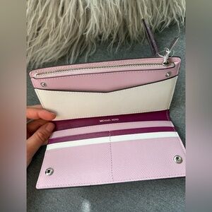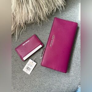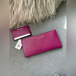 Elegant fuchsia wallet and card holder by Michael Kors. Ideal for keeping essentials organized.