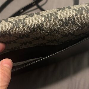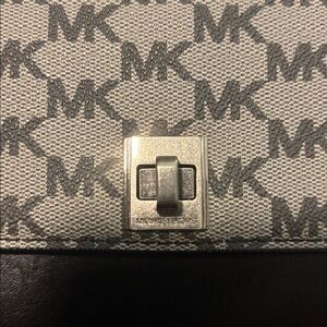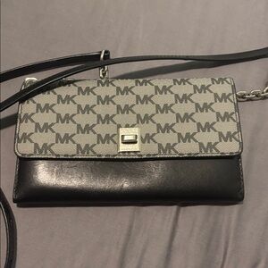 Chic crossbody with MK monogram. Sleek black leather accents. It stunning!