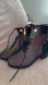 Chic ankle boots with monogram design. Features lace-up front and gold zipper detail. Size 7M