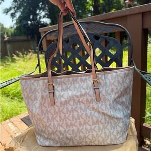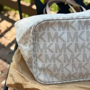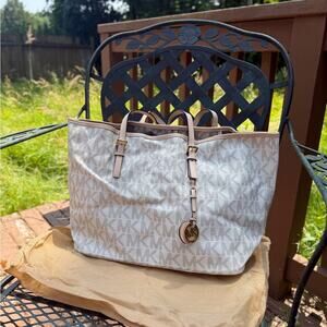 Elegant Michael Kors tote with signature monogram. Perfect for daily essentials. Stylish and versatile.