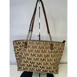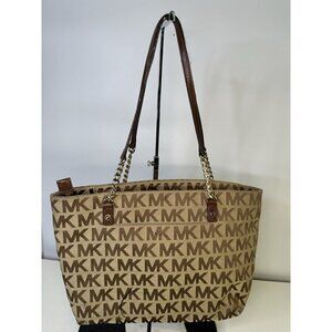 Michael Kors Monogram Logo Black Chain Tote Shoulder Bag Canvas Handbag/Purse