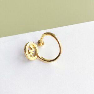 Authentic Michael Kors Monogram Logo and Crystal Gold Open Ring Size 7