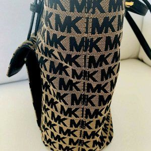 Michael Kors Monogram MK Medium Jet Set Khaki/Black Jacquard Tote Shoulder Strap