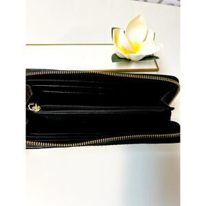 This Michael Kors monogram wallet features the iconic MK logo print and sleek gold-tone hardware, perfect for adding a touch of designer style to your everyday essentials. With a full zip-around closure and organized interior, it’s both fashionable and functional.