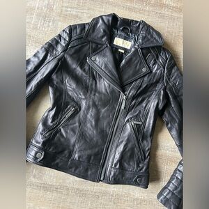 Michael Kors Moto Jacket Women's S LIKE NEW Black Genuine Leather full zip