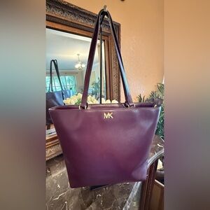 Michael Kors Mott Burgundy Leather Double Handle Zipper Tote Bag - MSRP $268