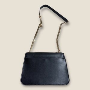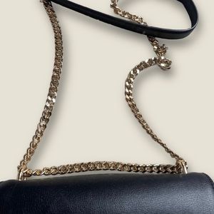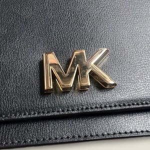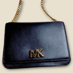 Michael Kors Mott Crossbody black gold logo wt strap chain Women Unisex Leather.