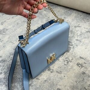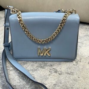 Michael Kors Mott LG Chain Swag Shoulder Bag 2 Way Crossbody Flap Blue