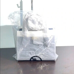interior one zippered and one open slip pocket, logo lined interior,