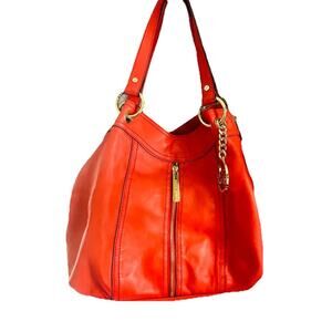 Michael Kors Moxley MD Orange Soft Leather Shoulder Bag Expandable Hobo Gold