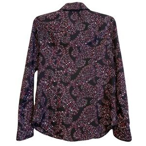Michael Kors Multi Floral Black Purple Lock Zipper Long Sleeve Woven Top Size S