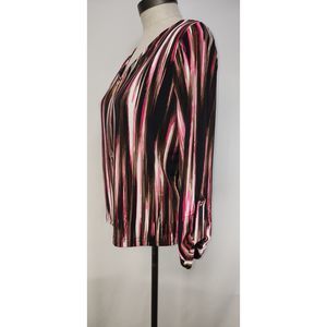 Michael Kors Multi-Color Half-Zip Blouse with Roll-Tab Sleeves Size S