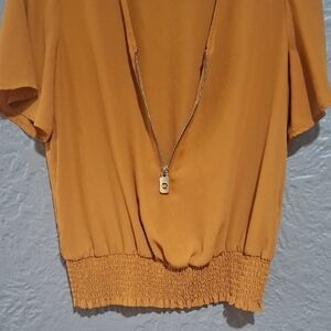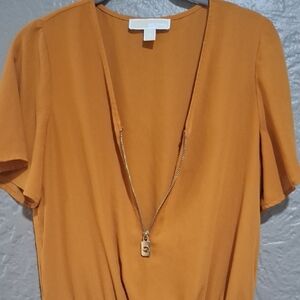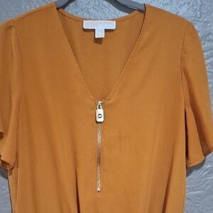 Michael Kors Mustard V-Neck Blouse with Zipper Size S