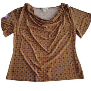 Michael Kors Mustard Yellow Geometric Patterned Cowl Neck Blouse Size Large