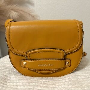 Elegant saddle crossbody bag by Michael Kors. Features a rich mustard yellow color. Ideal for everyday style. Adjustable crossbody strap. Excellent condition. No call outs.