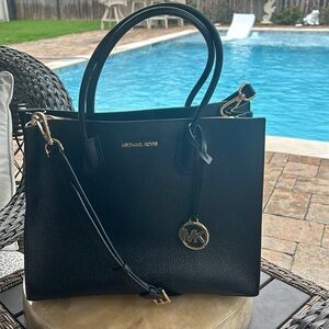 Michael Kors NWOT(Pre Loved) MEDIUM Mercer Black Pebbled Leather Tote/Crossbody with Gold hardware. One Main zipper compartment with an open compartment on each side. Be PREPARED, When you buy this bag From My Closet (Only) , Your Gift WILL be a Michael Kors Wallet! NWY! Gorgeous Bag!
