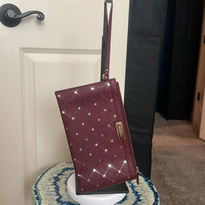 Michael Kors NWOT Burgundy and Gold Diamond Large Wristlet No Callouts