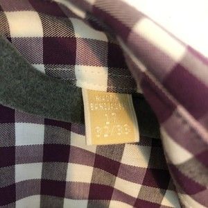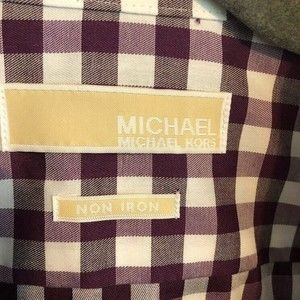 New with tags Men's button down shirt by Michael Kors. Size 17 neck, 32/33. Dark purple plum colored check gingham pattern. Non-iron, 100% cotton fabric.