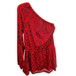 Michael Kors NWT One Shoulder Python Print Top Red and Black Medium