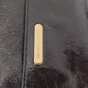 Michael Kors Naomi Black Leather Clutch with Detachable Gold Chain Strap