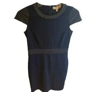 Michael Kors Navy Blue Dress Studded Neckline & Waist Cocktail Dress Small