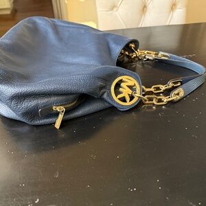 Michael Kors Navy Blue Fulton Chain Shoulder Bag Excellent Condition