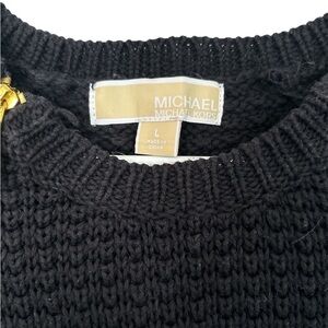 Michael Kors Navy Blue Knit Gold Zip Detail Long Sleeve Sweater Women's